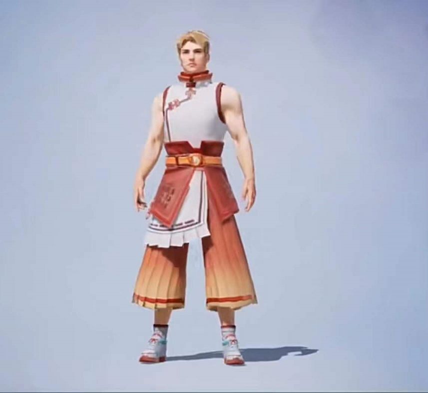 男版的团圆交子配色都差不多,但是上身为高领无袖的上衣,玩家可以看到男性角色健硕的臂膀。下身则是宽裤腿的九分裤,给人一种非常大气的感觉。