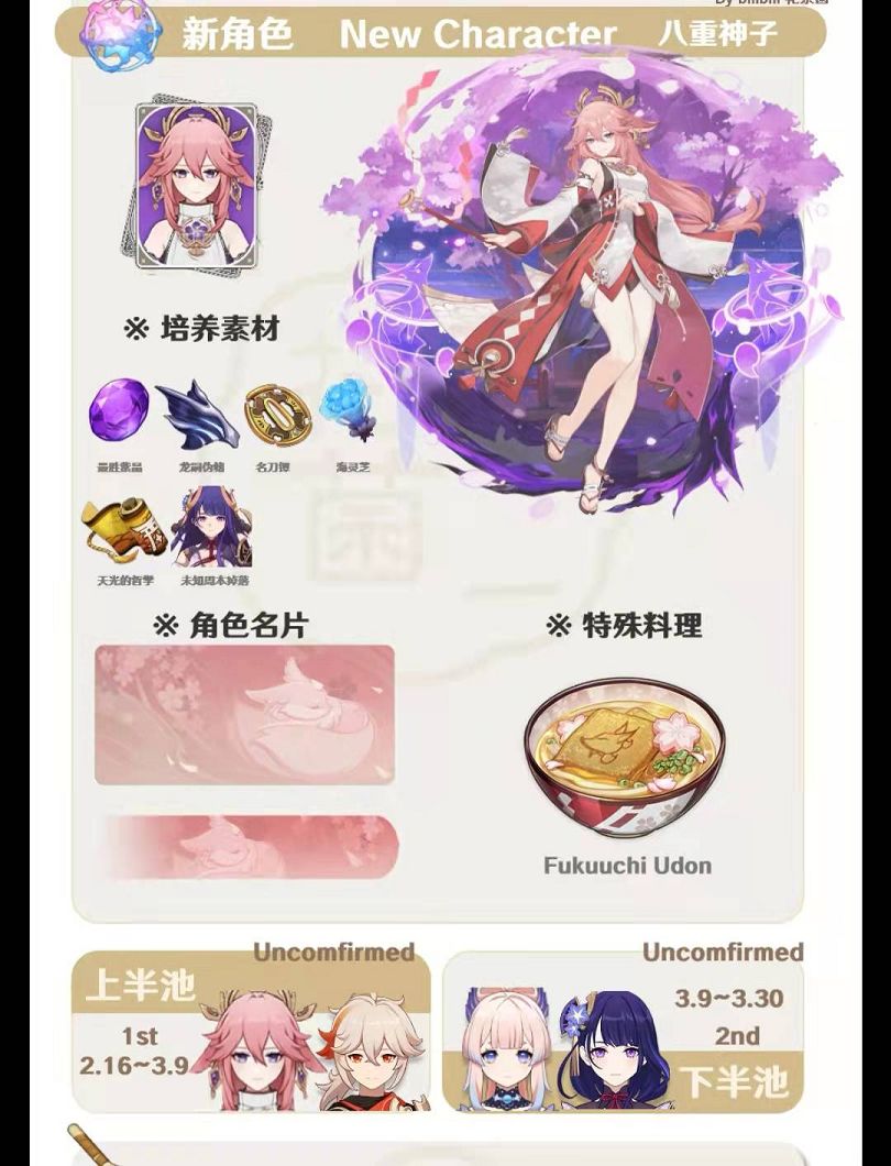 目前能确定的只有八重神子2.5版本中必定登场,但不确定上下阶段上场,上半场预计是2月16至3月9日,下半场预计是3月9日至3月30日。到时候的前瞻直播肯定照常提前至少一周的时间,我预测是正月初七初八就会放出消息,大家就能拿到准确的消息,以及卡池的信息了,那些想要抽钟离和甘雨但依然没有下定决心的玩家,不妨等到前瞻卡池公布再做决定也不迟的。