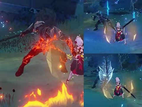 3..黯色空壳 火:攻击命中带有盾的角色时,会给自己和队友生成24元素量的火元素护盾,相当于2个深渊法师的盾。