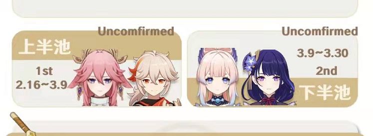 复刻卡池,目前争议比较大的就是万叶雷神心海,尤其是万叶估摸着也到了该复刻的时候,而神里宵宫可能就要到2.6或者须弥开启后再见了,卡池新武器也亮相设计上还是比较新颖的,属性是增加爆伤,泛用性应该不会差。、
