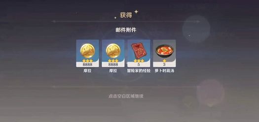 签到活动共有三天,每一天签到之后就可以领取一个兑换码,三天连续签到就可以领取到共计三个兑换码。第一天的签到奖励是8888个摩拉以及3个萝卜时蔬汤,第二天的签到奖励是8888莫拉以及5本冒险家的经验,最后一天的签到奖励是80原石。这个签到奖励是先到先得的,所以大家需要第一时间就进行签到活动的参加以及游戏内的兑换。