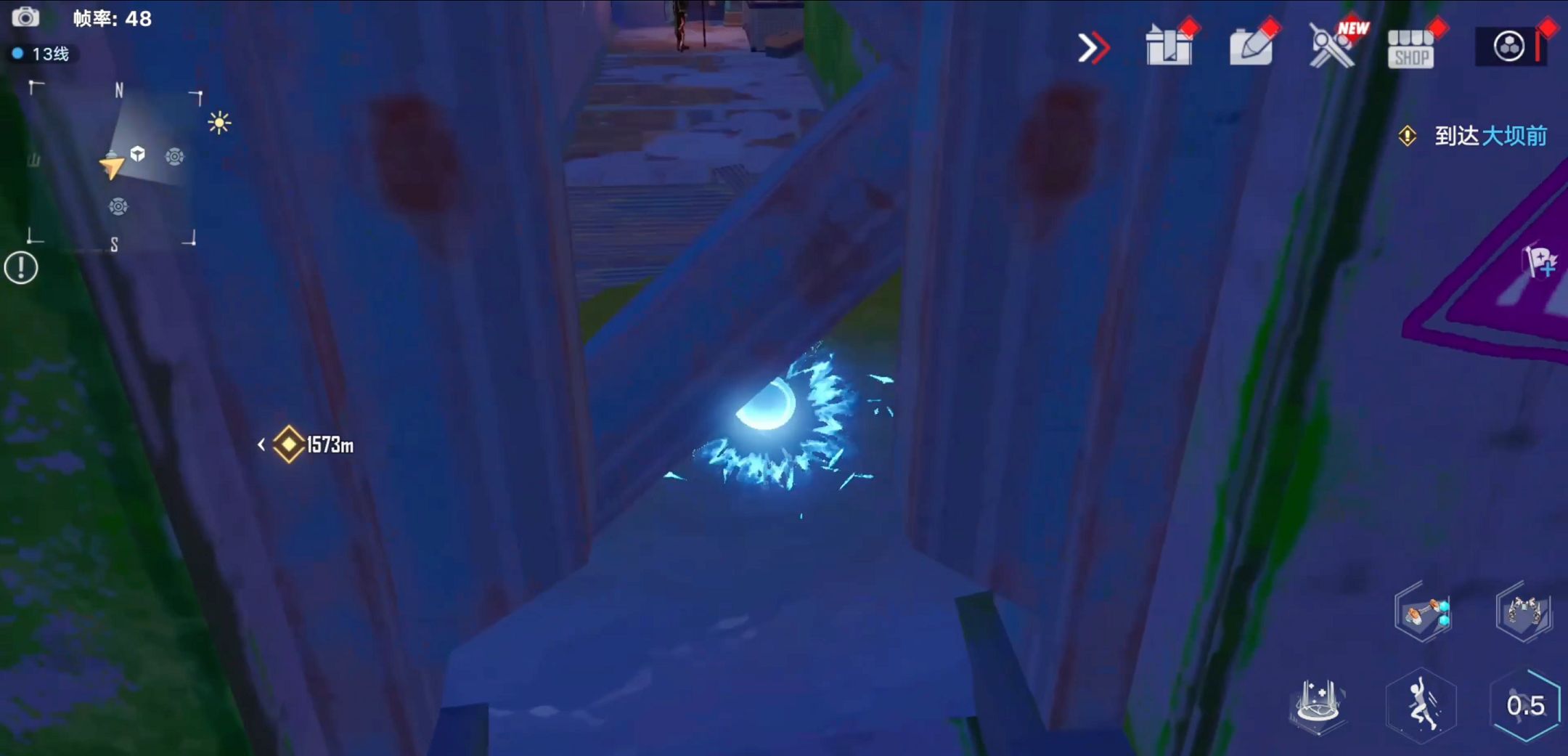 4、和刚才相反的方向,约东南方飞行,参照物是这个柱子,到达附近后需要转动视角,落地即可。