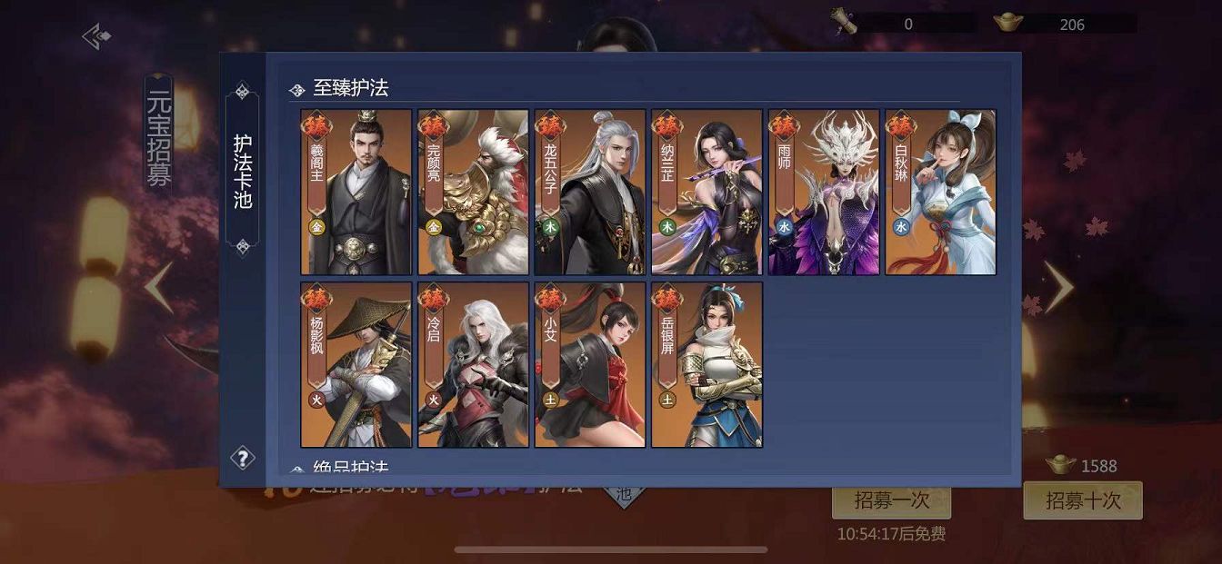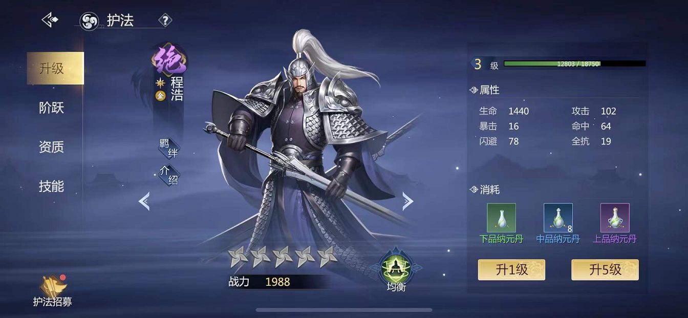 绝品质中,比较适合白麓的护法也是三个,分别是石俊、程浩、殷童,这三个护法虽然基础属性差一些,但是培养难度也是较低的,可以帮助白麓提升暴击、命中以及全属性抗性。