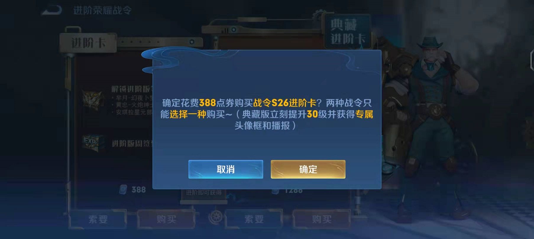 2、典藏进阶卡:典藏进阶卡的好处是可以更快的升级战令等级,从而比别人更快得到新皮肤,同时还能获得当前赛季的限定头像框。典藏进阶卡的售价1288点券,也就是128.8元,价格比较昂贵,不推荐长期玩的玩家购买。
