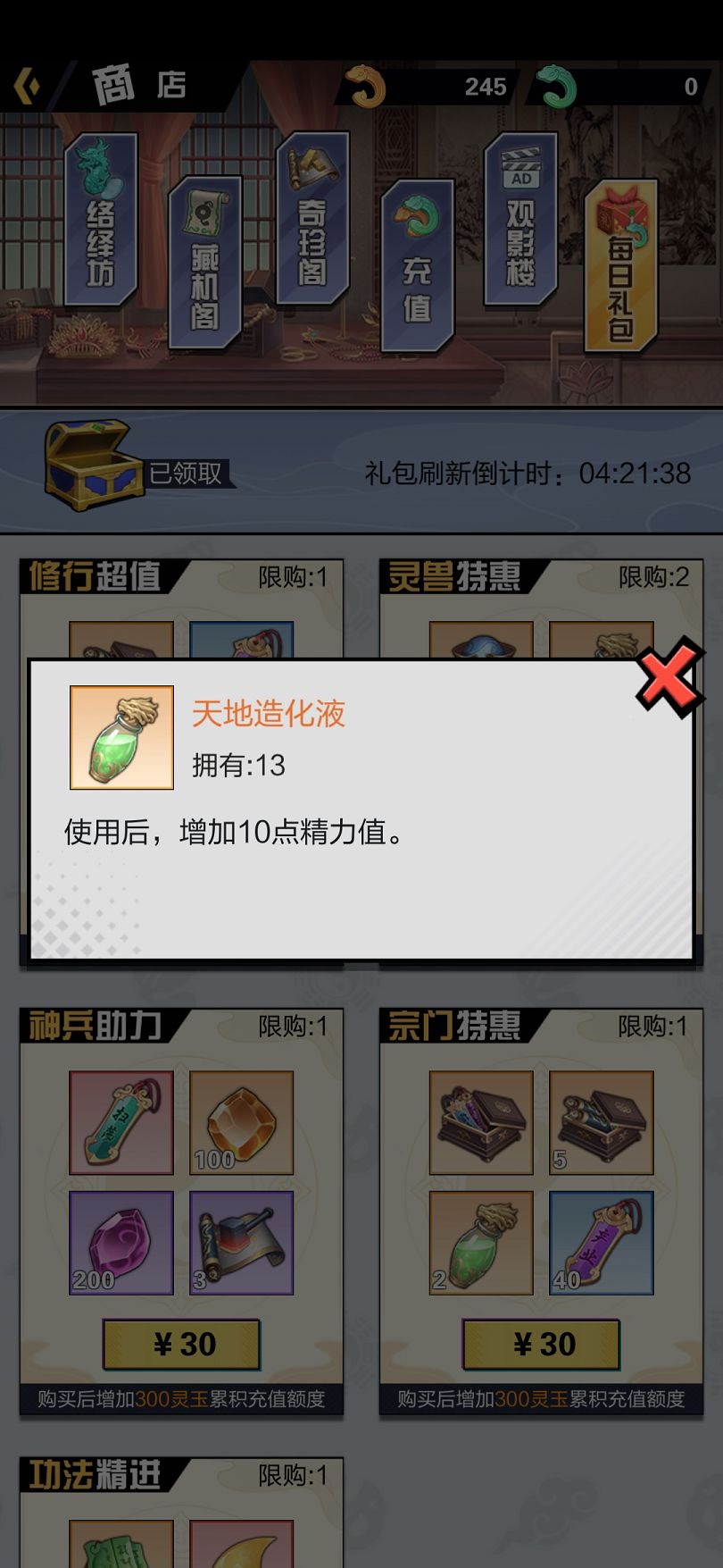 好啦,以上就是小编给大家带来的关于超凡之路手游的天地造化液怎么获得的全部内容了,希望能够帮助到各位小伙伴们。