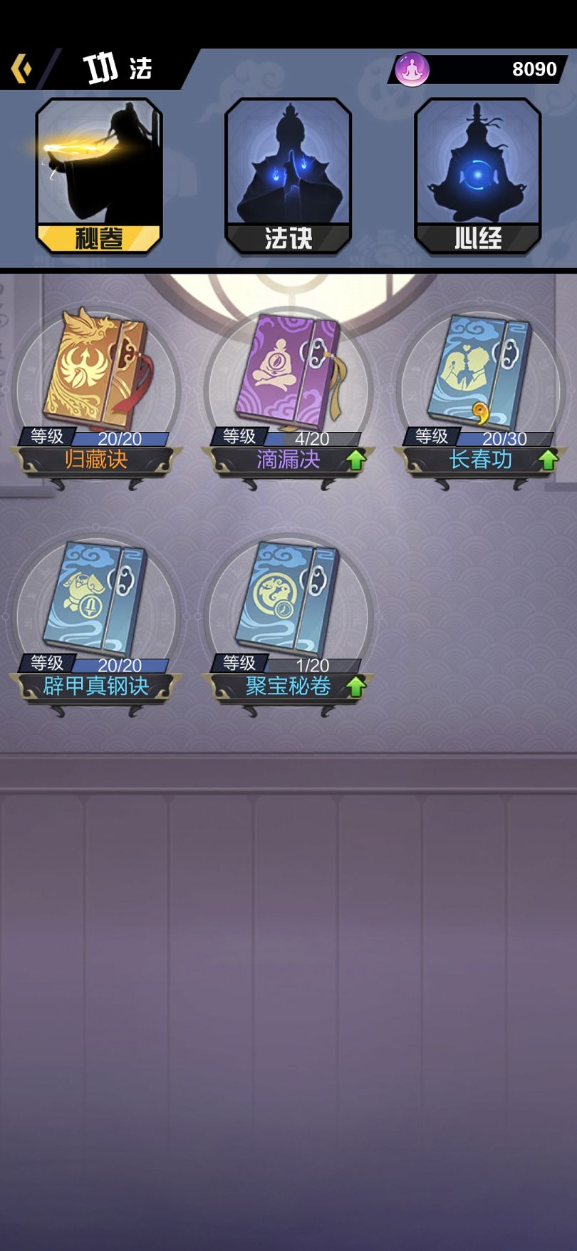 然后就是需要一些功法的支持,最好有一个神品功法的加持,神品功法也是很好的获得,通过抽奖便可以获取,神品功法带来的提升还是很不错的。