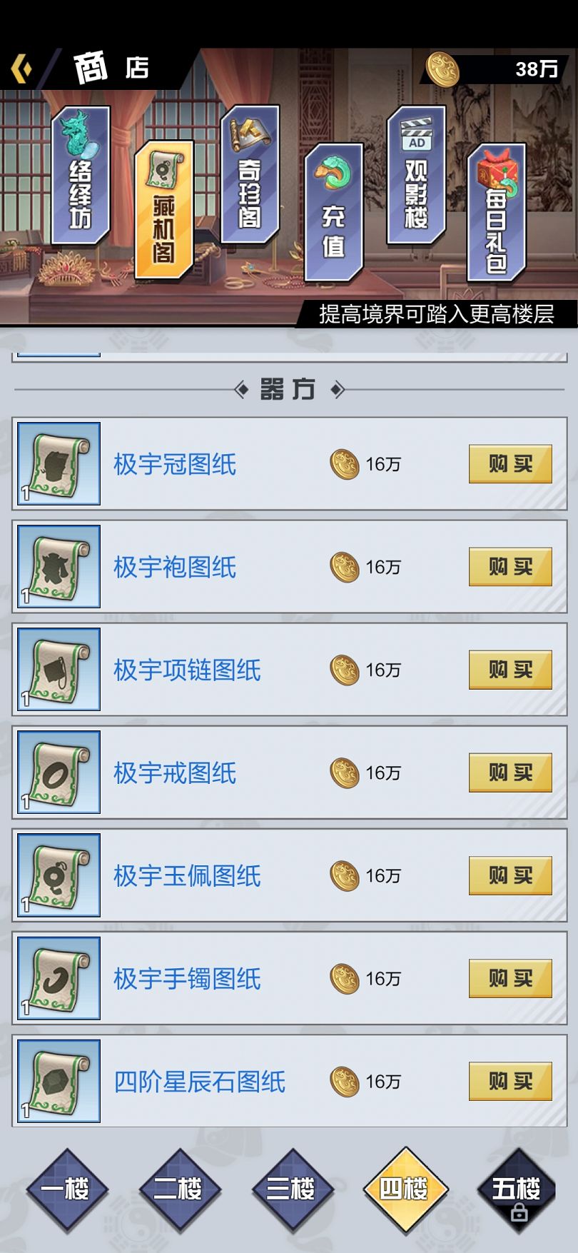 首先,小伙伴们想要通过第十二章,对于装备是有一定要求的,小编推荐大家先去商城购买四阶装备图纸,然后打造一套四阶装备,对于装备品阶的要求不高,但是需要四阶套装,毕竟四阶套装的战力还是非常高的。