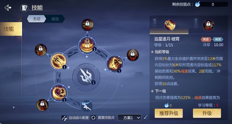 在前期的战斗当中,玩家们需要优先考虑天王的近战输出能力,那么主要技能加点方向为追星逐月技能,该技能在使用之后还会进一步提升天王的生存能力,而对敌人却可以造成基础伤害和减速的负面效果。