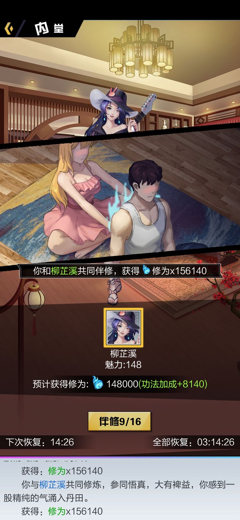修为的获取也十分简单,玩家的每一次离开游戏修为就会增长随着时间增长,还有就是可以通过宗门中的内堂与弟子伴修能够获得大量的修为,但是伴修是有次数限制的,一定时间后便可恢复。