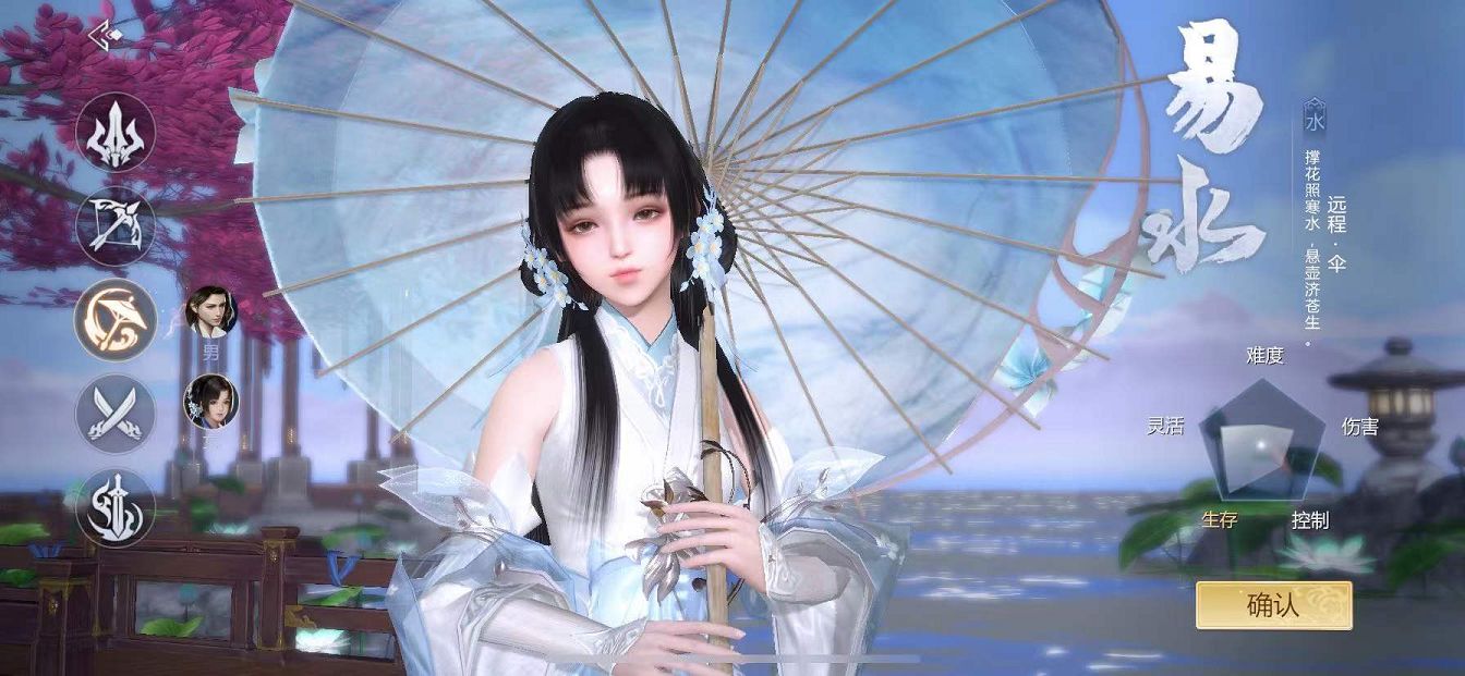 易水属于游戏内的核心职业,它是游戏内唯一一个辅助职业,拥有一定的治疗效果,另外,不同于其他的辅助,易水自身的血量非常厚,自保能力很强,另外的三个技能还有一定的输出效果,可以独自作战,也可以参与团战,一般来说,辅助在游戏内可以说很抢手的,队伍必备职业,比较适合妹纸们去体验,上手难度低,而且还有各种各样好看的免费服饰。