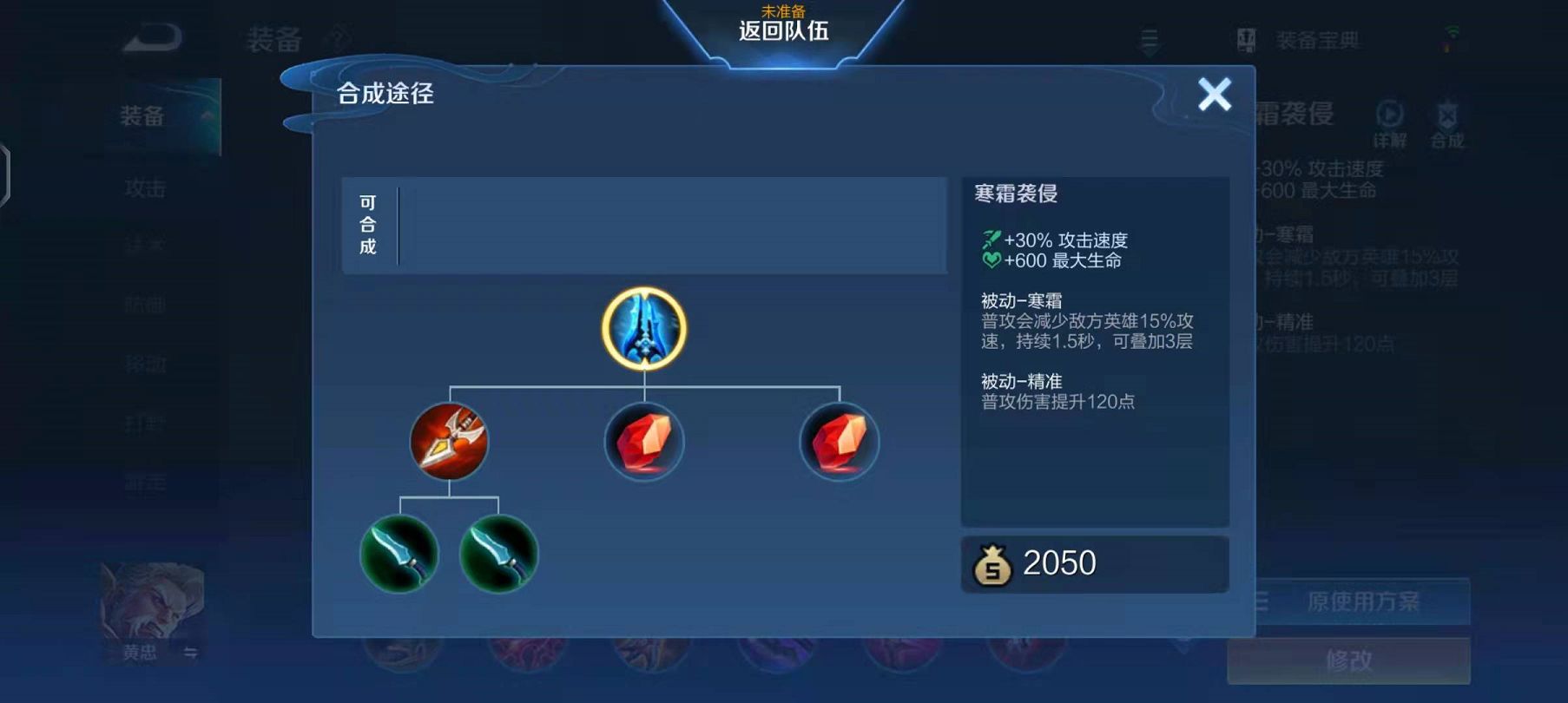 1、推荐装备:极速战靴(攻速鞋)、冰霜长矛、破晓、影刃、泣血之刃(大吸血刀)、名刀。前期的攻速鞋加上冰霜长矛强度非常的高,算是全射手中拆塔速度最快的英雄了,最重要的是冰霜长矛和黄忠的契合度高,还非常克制版本T0英雄马超。