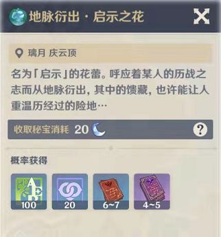 3.挑战地脉之花,就是蓝色的地脉花,20体力可以掉落4-5本大经验书以及中小经验书若干,玩家可以在合成台做浓缩树脂去打还能节省时间,这个方法是玩家获取经验书的主要方法之一了,只要体力够就能刷,不过前期是不建议这样做的,体力树脂主要还是刷武器、天赋、圣遗物材料为主。