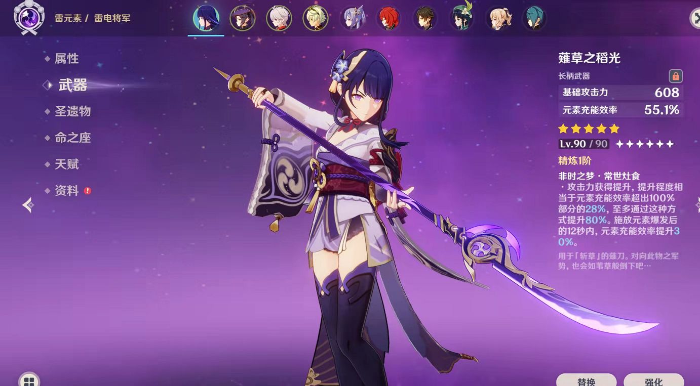 2.雷电将军,是国家队适配性最高的角色之一,可以当副C和主C使用,而且队伍的充能循环因为雷神的存在将得到显著提升,在2命后的雷神最适合做主C使用。养好之后,大世界玩法中雷神一般元素爆发打一套后能量都可以回满,保证下一波刷怪。