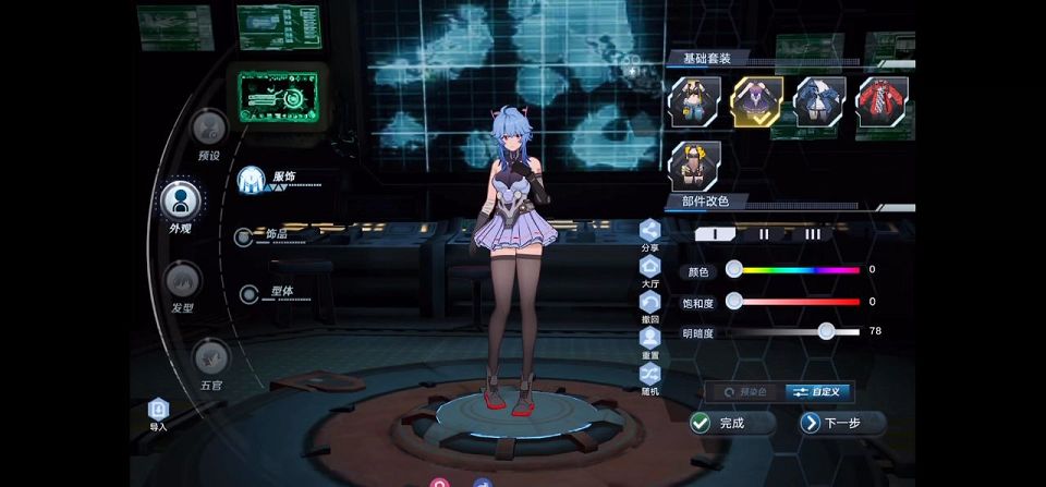 整体套装我们选择第二套,部件改色颜色调为零,饱和度调为零,没有暗度调成78,第二部分颜色调成67,饱和度调成59,明暗度调成100,第三部分颜色调成63,饱和度调成57,明暗度调整88。