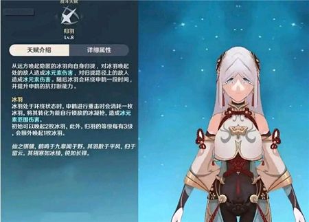 天赋1:申鹤每消耗一枚冰羽,其冰元素伤害加成和攻击力都会提高。