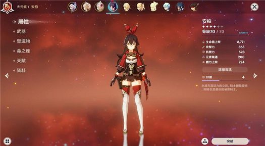 过渡装一般是前中期使用的,如果到了后期还是想培养安柏,那么就可以选择一个毕业套装,这里推荐大家选择炽烈的炎之魔女,2件套可以提升安柏一定的火元素伤害,4件套是超载、燃烧反应的伤害提升,蒸发融化反应的加成系数增加,并且在施放元素战技之后火元素伤害加成提升到50%,而且效果还可叠加3次。毕业装的安栢不仅有超高的火元素伤害加成,而且和火元素配合的反应伤害都有所提高,这让安柏在队伍中的搭配就没有压力了。
