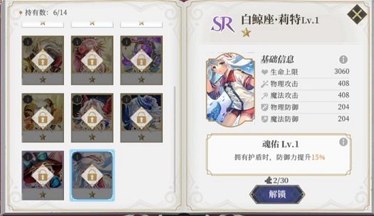 游戏中玩家等级达到31级之后就可以解锁本命功能,为角色装备上相应的本命卡之后可以获取一定的特效或者是属性加成,而目前游戏中的本命卡一共有12张,其中6张SSR、4张SR以及2张R级本命卡。除了R级本命卡是赠送之外,其余的都需要我们消耗碎片进行解锁。