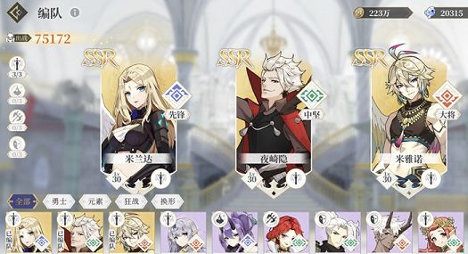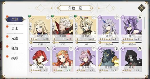 其他三个队伍的ssr搭配就是十分简单了,勇士选择夜崎隐、米兰达以及米雅诺,狂战选择兰奇、夏瓦尔以及艾缇欧,换形队伍选择阿德琳、娜尔科绨丝以及纳塔娜就行了。而除了初始ssr角色之外,其他的角色也是能够通过培养升阶为ssr的,这就不在本篇的讨论范围之内了。
