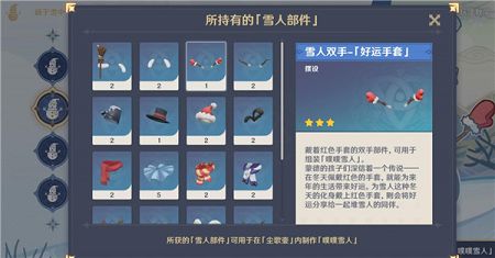 此外如果玩家获得的部件有多余的可以和自己的好友交换自己需要的雪人部件,或者将自己的部件赠送给好友,好友也可以将自己多余的部件赠送给你,这样就不会有浪费的雪人部件了。