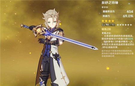 这把单手剑可以提升元素战技的伤害值,伤害值是根据其防御力来增加的,非常适合阿贝多这样吃防御力的输出角色使用,所以如果大家在第一期的up池获得了阿贝多,那么这把白嫖的武器必定不能错过。