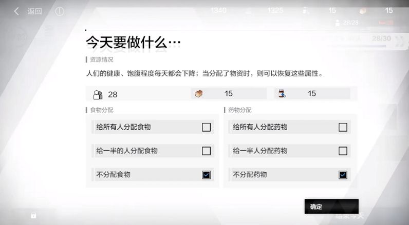 1、依然是分配所有的药物和食物,剧情直接诚实的告诉他。