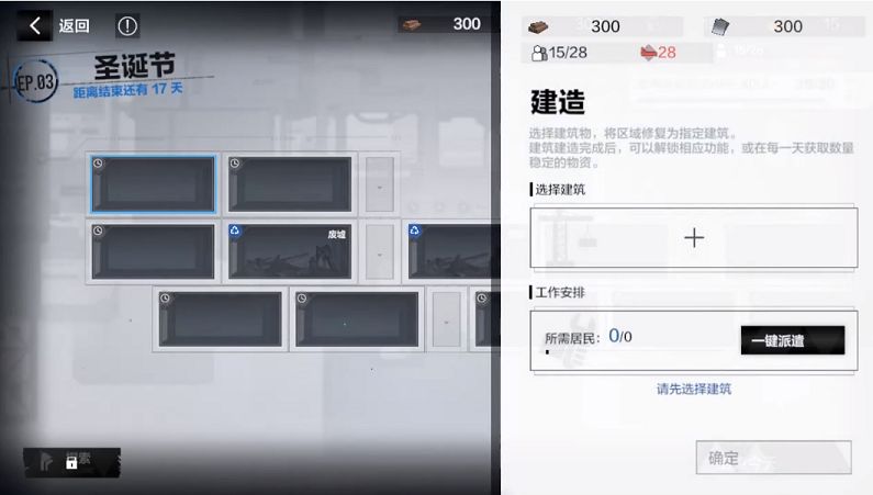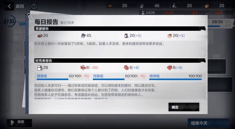 1、把所有的药物和食物都给分配了,团聚剧情获得75的建材。