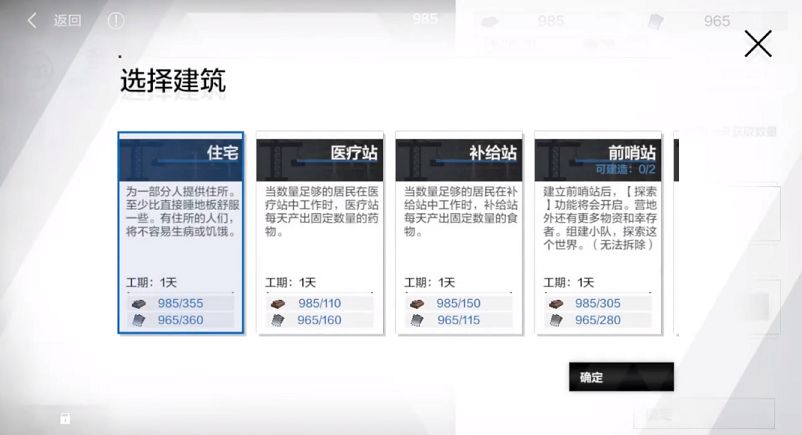 2、然后建造两个住宅和两个哨站,需要注意的是建造好的设施需要用人打工。