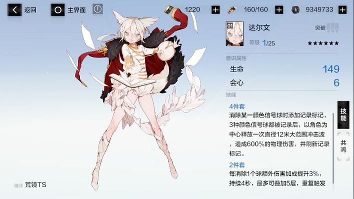 2、意识推荐:4个达尔文+2个列文虎克,两件套的列文虎克可以提升10%以上的输出。达尔文和里乱数的武器和其自身都非常的搭配,都是依靠消除来提升输出。