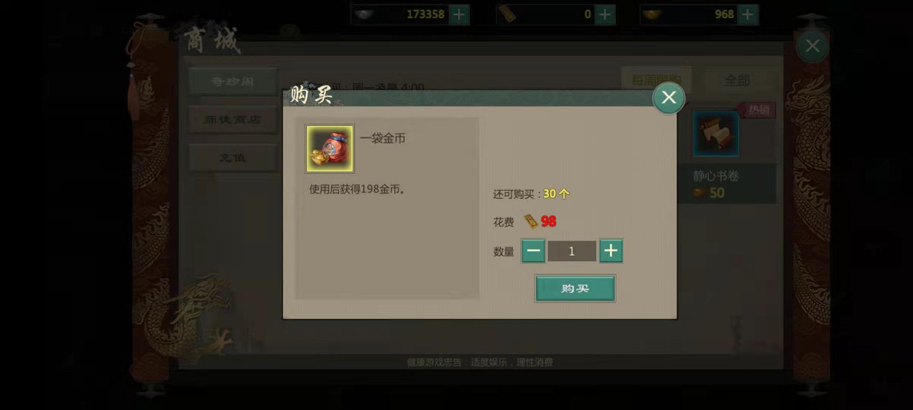 除了拍卖之外,还可以自己去打装备和秘籍,然后在摆摊中进行出售,但是一定要去银票摆摊才可以,银两摆摊得到的银两是无法换成金币的。银票摆摊获得的银票,可以在奇珍阁中购买金币,而且每天都有打折的金币出售,建议每天都把打折的买下来,非常划算。可以得到银票的商品有稀有的装备,稀有的武器,纹钢等。其中装备和武器可以在五行阵,剑冢迷宫,时间挑战等活动中获得,秘籍可以在各种竞技活动中获得。