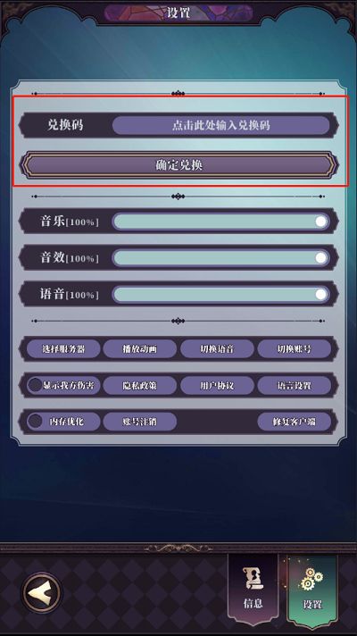 2、点击设置界面上方的“点击此处输入兑换码”可以输入兑换码,输入后点击下方的“确认兑换”即可。