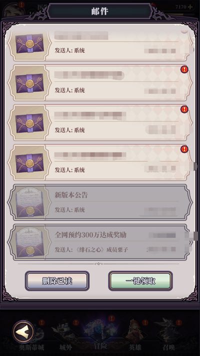 2、如何领取:这个全平台的预约奖励是无需玩家自行领取的,当玩家的主线任务通关到(2—4)后,预约奖励将会自动发送到邮箱中,自行去邮箱领取即可。