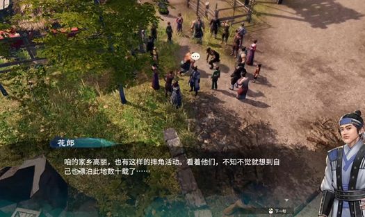 来到京南驿石墙这里调查,使用运劲可以看到石墙刻有工作台的字样,这个触发了剧情,有一个二拳道人(一拳超人?)邀请我们帮忙,这里选择【满腔热血地答应】。原来道人是想让我们驱散在门前的群众,来到群众这里找男子对话获取情报【摔角比赛】,与周围全部的npc互动完获取情报【聚集的原因?】。将这两个情报拼凑在一起可以推动支线流程。