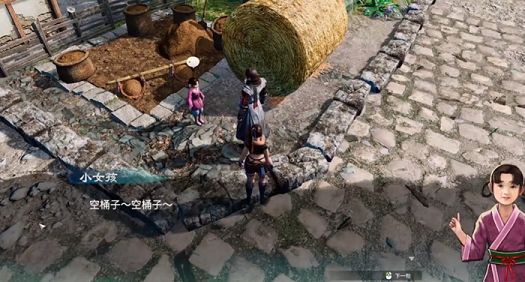 我们这里可以获得任芸给予的萤石,通过萤石我们就可以探测出桶子是否是空的。一般来说这个时候我们就需要一个个前往寻找,其实空桶的位置就是在练武场的附近,这里有几个小孩坐在桶子上面。调查之后就可以找到刘婶触发接下来的剧情了。