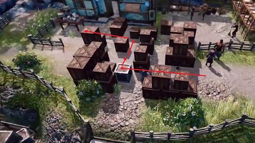 到达土伯家门口发现搬货的工人在跟土伯抱怨门口的箱子太多了,货物运不进去。土伯说跟他没关系,给了钱就要干活,此时提示巡礼长空任务更新。土伯的任务变成了敦亲睦邻。这里我们来到第一个大箱子这里往下推然后往深处走。第二个小箱子往最右边推,推到底。推完之后调查第一个推得箱子可以获得一个书信,是给迟史的信。