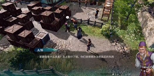 然后将土伯旁边的箱子按照图片的位置先往左推,然后站在下面往上推,最后站在右边运功往最左边推就可以完成了。完成任务之后我们可以获得188点金钱奖励。这里我们需要跟土伯进行对话,土伯以前是做医生的,但是现在发财了所以就没做了,村里有人生病就直接叫车让他们去县城看病了,果然是财大气粗。