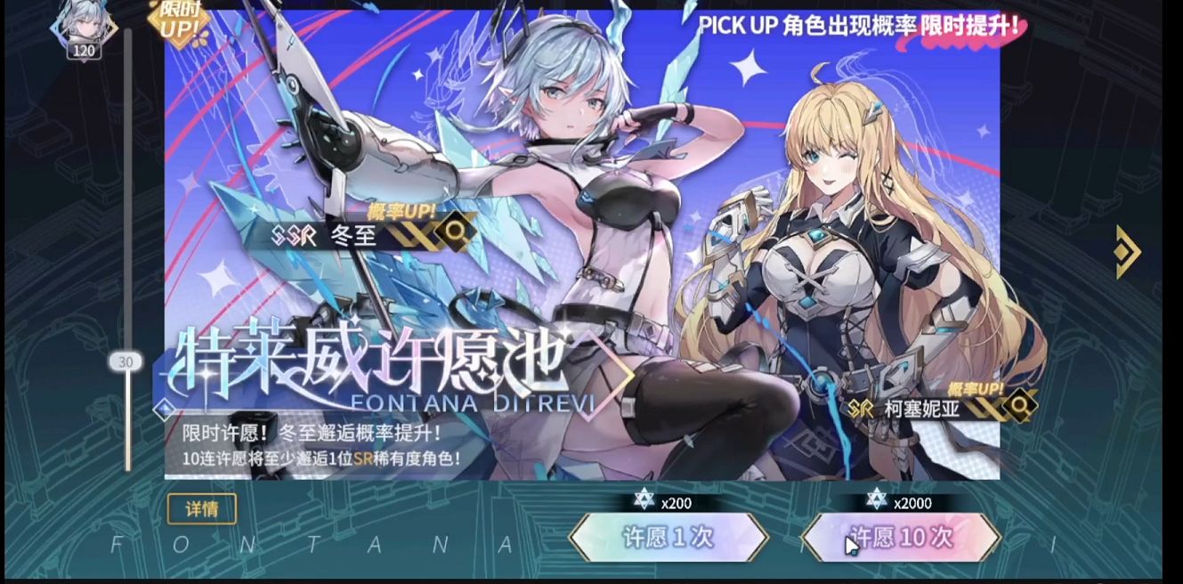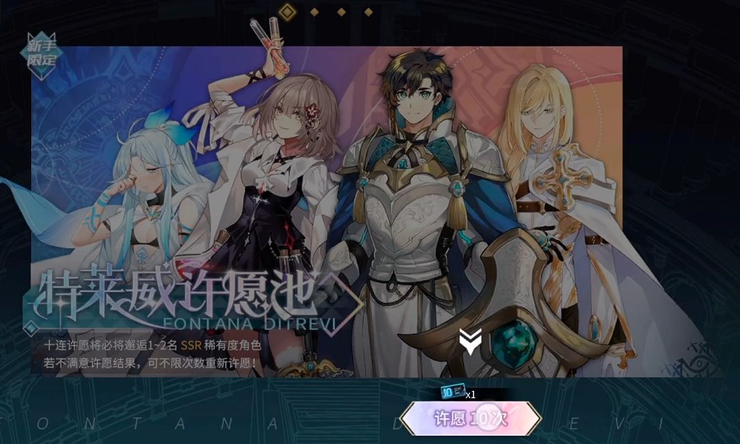 首先说新人限定许愿池。每个新人玩家都可以在新人限定许愿池中不限次数的抽取角色,必定可以抽到一到两名ssr稀有角色,并且可能出现的ssr角色也是受到新人限定许愿池限制的,广泛受到玩家喜爱的有有莲花,伊莎贝拉,夏洛特和莉莉安,这个卡池一般建议大家抽到夏洛特和伊莎贝拉就可以进入游戏了。