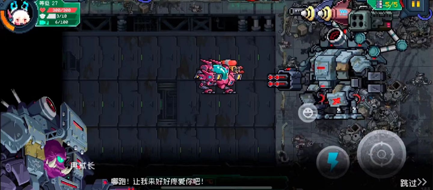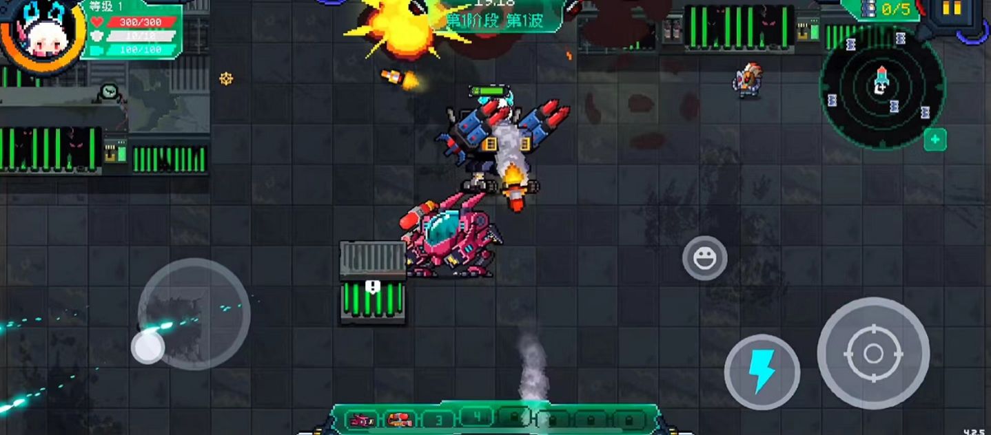 游戏开局欧博士会提供5架全新的机甲,供玩家自由选择其一。推荐玩家选择红色武器为爆裂的机甲,该机甲的生命值和伤害系数都很高,护甲中规中矩,缺点在于机动性较差。