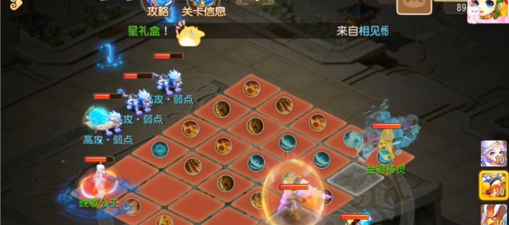 第十关中有一个会救人的奶,这个奶还是龟速,很容易在己方行动完成后,将目标拉起从而起身打输出(怪不易被击飞)。剩下2个血非常厚还会玄法的怪和2个攻击力高会弱点的怪,乍一看对手的阵容有治疗有坦克有输出,非常的强势。