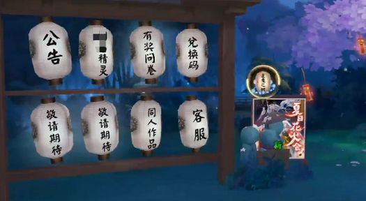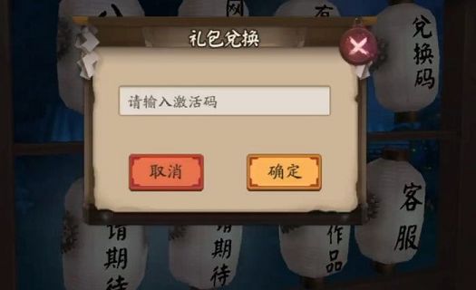 首先玩家们需要进入游戏的主页,当进入主页后大家点击屏幕来移动里面的晴明,一直向左走会慢慢出现一个大架子,在架子上有很多白色的灯笼,这些灯笼上面都写着字,分别是公告、精灵、有奖问卷、兑换码、敬请期待、敬请期待、同人作品、客服,小伙伴们点击其中的兑换码会出现一个小方框,将已知的兑换码全部输入进去,再点击领取就可以获得那些奖励了。