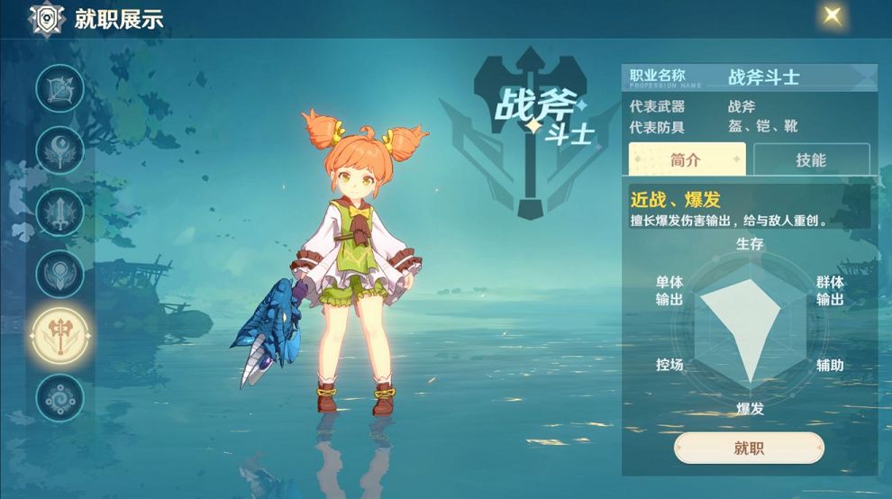 战斧斗士的一个主要定位就在于近战爆发,就单体输出这一项来说,战斧在六个职业里是最厉害的一个,同时高爆发能力也是这个职业的一大特色,在战斗中这个职业往往可以凭借着自己优秀的单体爆发输出,给敌人对手们以重创,想要一斧子带走一个也是可以做到的,让敌人们可以有效减员。