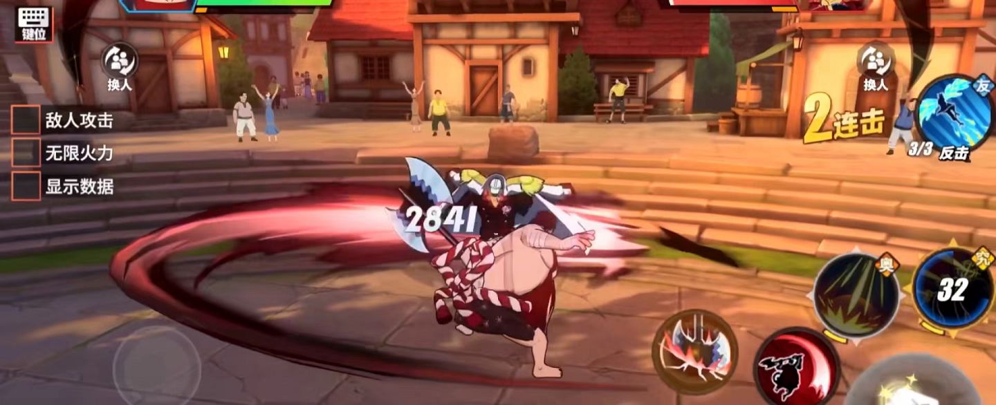形态1有斧头时1技能是丢斧头,2技能是化身霸体向前攻击。形态2没斧头的时候,技能1是向前冲挥拳攻击,2技能化身霸体原地掌击。同时战桃丸捡起被丢出斧头后,可以强化形态1的2技能。