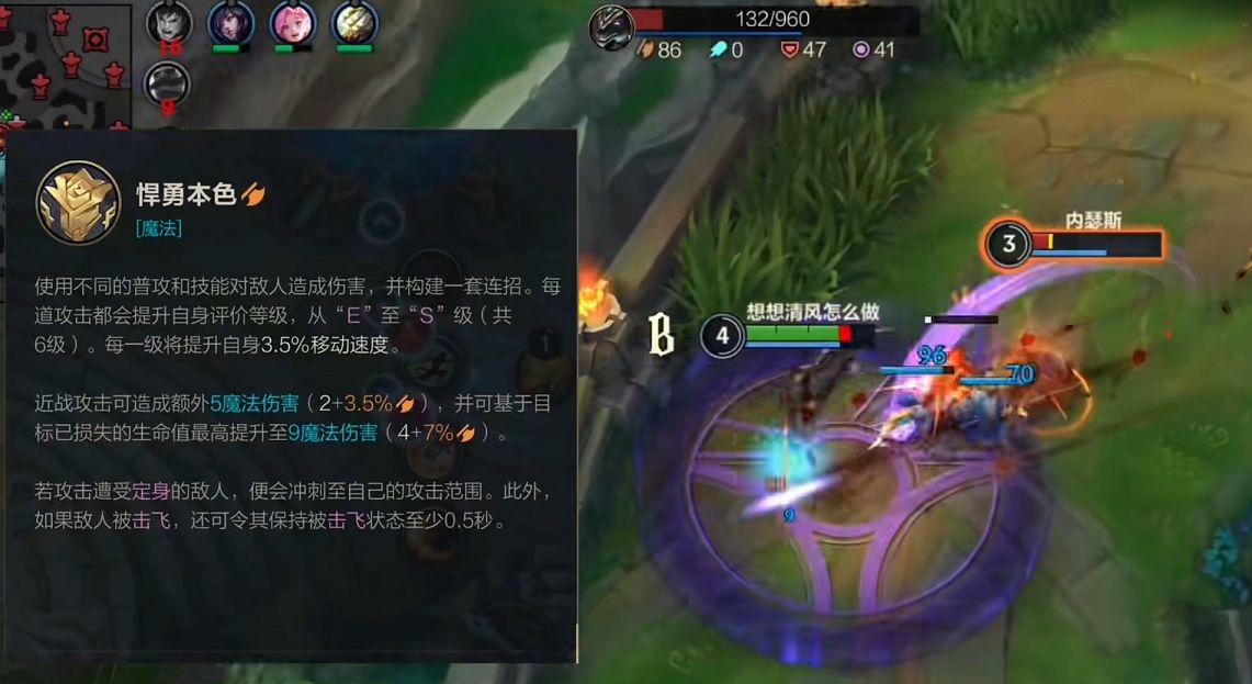 这是因为这些技能的独特效果,所以莎弥拉在操作中不同于无脑A的射手,而是需要在近战和远程之间进行切换。对线期间可以先利用Q技能多消耗对方,在线上起到压制效果,团战之后莎弥拉需要先使用远程配合队友输出,不断的叠加评分,看准机会切入到人多的地方,释放大招造成海量伤害。