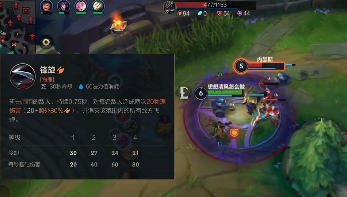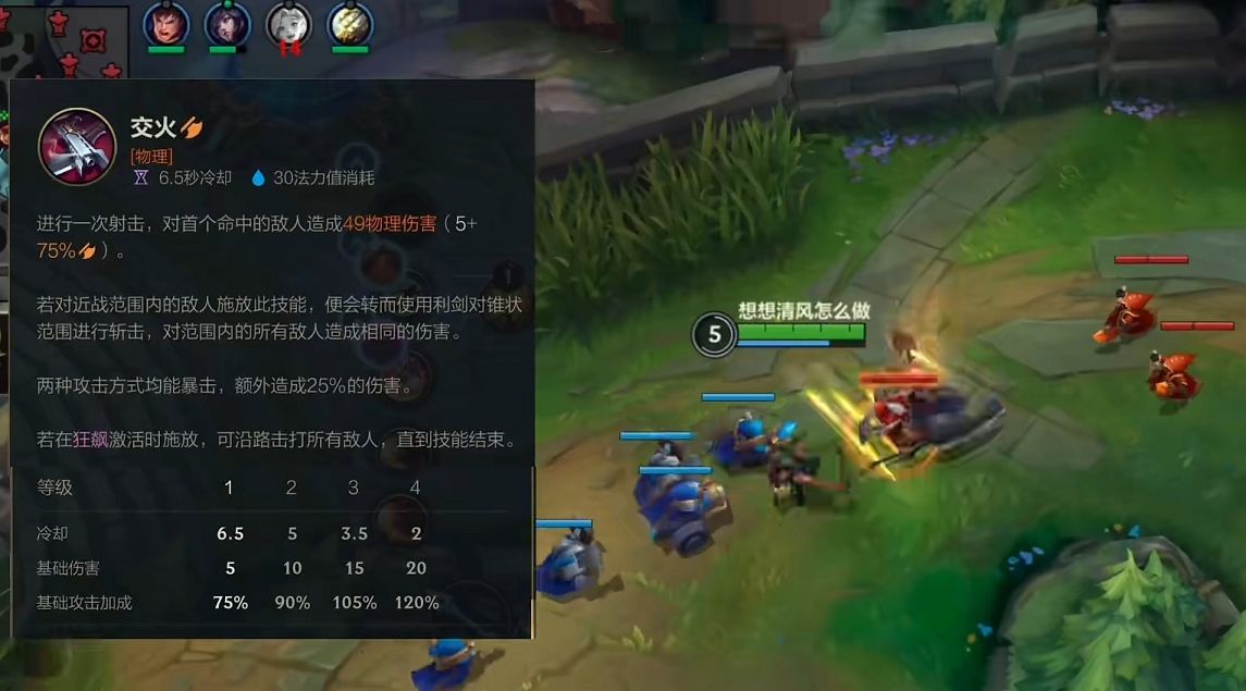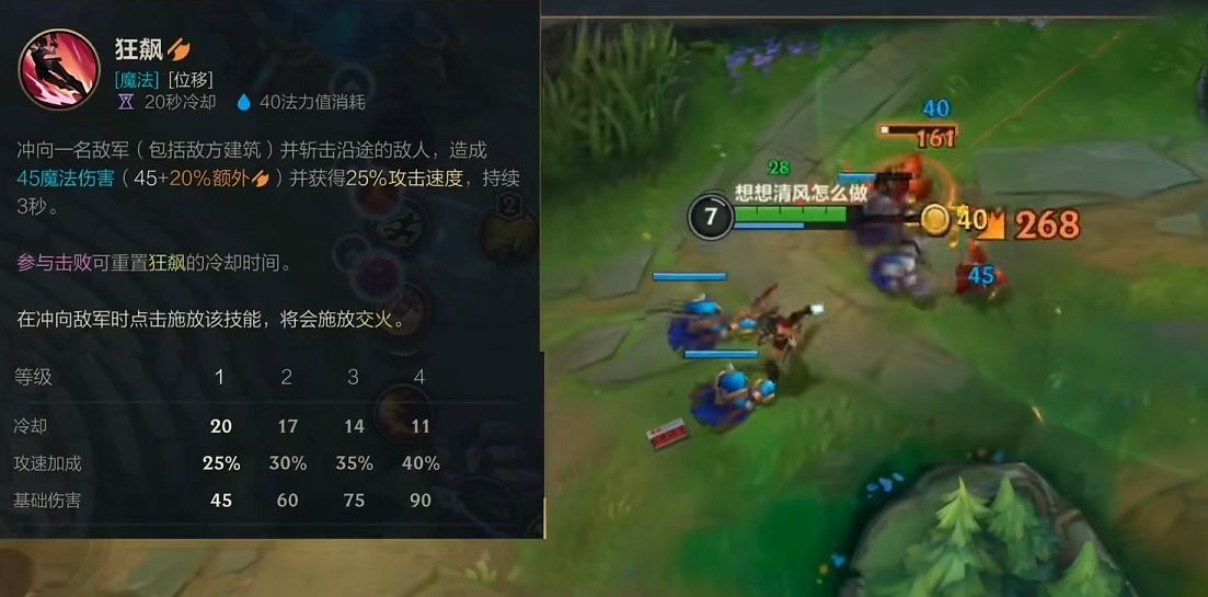 因为大招最多可以伤害5个敌人,所以最终的输出和切入的时机息息相关。因为有着W技能的缘故,所以在线上的生存能力还是能够得到保证,只要不太深入基本不会被蹲。