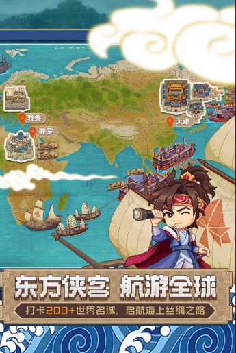 这款游戏的画风是非常简约的,船长看上去也与其他的船长不一样,充满东方元素的画风,在这个华夏的土地上,玩家们可以参与很多趣味模式,打卡各种著名建筑。