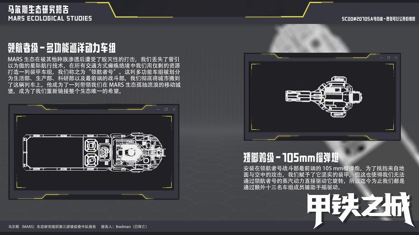 这款甲铁之城手游的一个特色之处就在于,它为我们设定了一个末日铁甲列车的科幻画风背景,在这趟列车上生活了许多的幸存者,估计其中也不乏有一同并肩作战的同伴角色,同时战车本身也是能改造、提升其科技树的,而通过改装,让铁甲战车更完美化,在面对异星生态的入侵战役上,也能吹响胜利的号角。