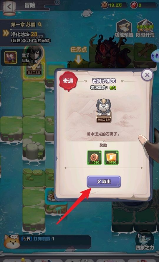 官方给出的介绍是玩家们需要使用对应的道具才能清除石狮机关,如果没有道具的话,还可以使用右下角的四象之力强制清除,这个四象之力主要的就是为玩家们提供一个增益buff,玩家们如果在冒险的途中遇到打不过的怪物,也是可以使用的。