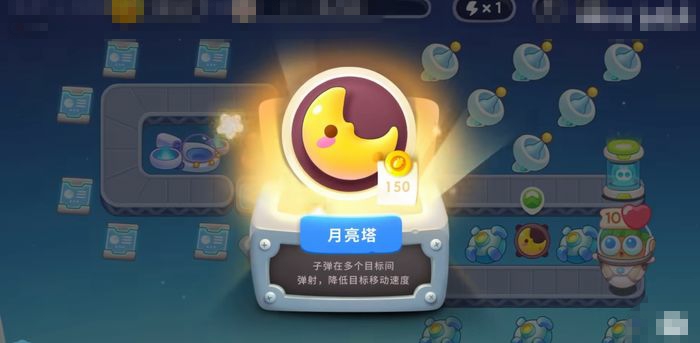 下面介绍的是月亮塔,伤害弱,但是速度快且子弹可以弹反最多三个敌人,打障碍物无法弹反,漏怪频率较小,可以对空单位伤害高一点,但是容易漏下地面怪,只比泡泡塔强一点。