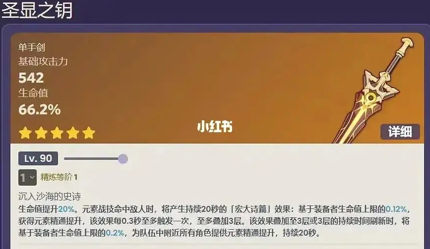 除非后续出胡桃类型的单手剑角色,不让这把武器还是很坑的,被动效果是血量再次提升百分之二十,此外e战技在命中对手后,会获得一个特殊效果,这个效果一共存在二十秒钟,在持续时间内根据携带者最大生命值的百分之零点一二获得精通加成,此效果零点三秒可以激活一次,最多能获得三层加成,同时自己的其他人物也将获得精通加成,存在时间为二十秒钟。