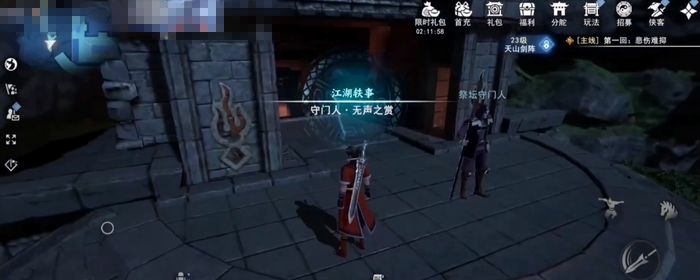 接完任务我们许要去前往祭坛,向看守校场的小兵打听一下,然后我们就火速动身前往了,找到小兵,这小兵直接没搭理主角,然后我再返回祭坛,祭坛的小兵也没说什么任务就结束了。