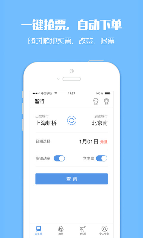 软件一键智能抢票,自动下单购买,还能随时改签、退票,通过云端监控订票。每天火车票、机票等信息即时更新,出行时间准确无误,掌握附近站点剩余票数量。